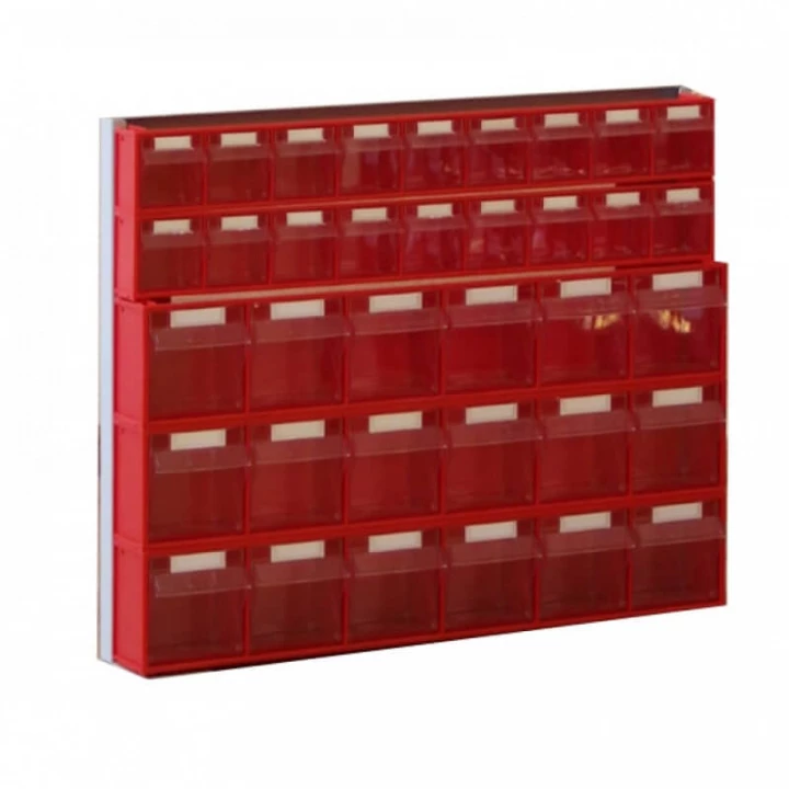 Серый (рама), красный/прозрачный (коробы)
